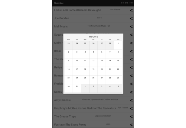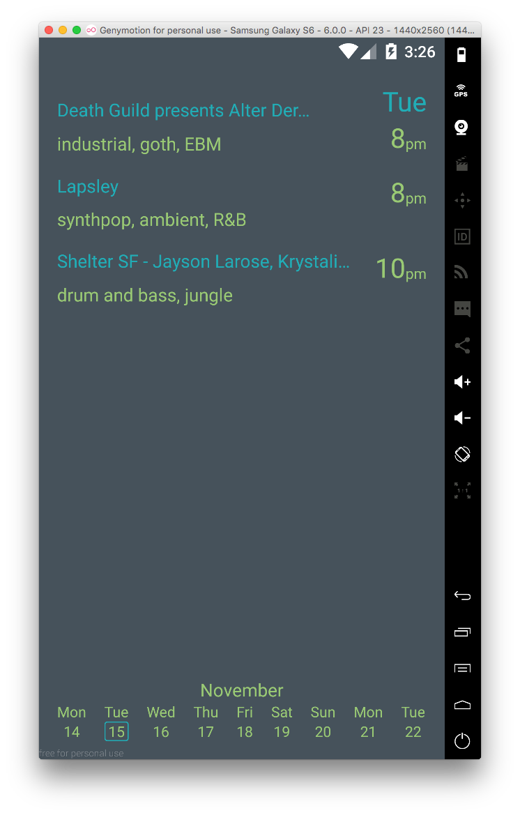 - In scrolling through events for a particular day and reaching the end, could in turn start listing the following date’s events, and while doing so, simultaneously moving the current selected date indicator accordingly.